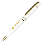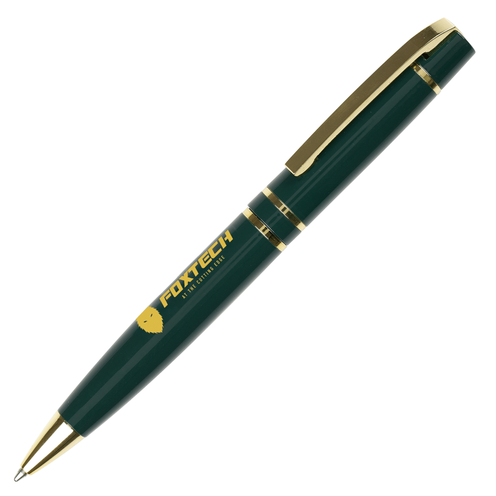 The Duke Gold Ball Pen from the Prestige Pens collection is a refined writing instrument designed to make an impression. Featuring a polished stainless steel barrel with luxurious gold accents and gold engraving to match, it combines robust construction with a sleek, elegant design. The twist-action mechanism ensures smooth and reliable operation, while the glossy finish adds to its premium appeal. Ideal for engraving with a name or logo, the Duke Gold Ball Pen is a perfect choice for executive gifts, high-end promotions, or client presentations. Available in classic finishes this pen brings a timeless look with a touch of prestige. Order now to showcase your brand with classic gold styling.