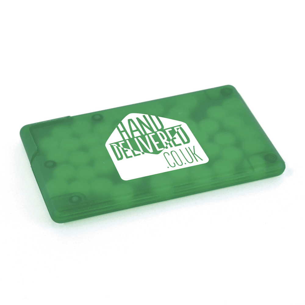 Plastic business card shaped holder containing approx. 50 sugar free Chinese mints. Suitable for Vegetarians & Vegans