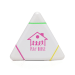 This promotional triangle highlighter set features three vibrant colours—Yellow, Green, and Pink—making it an eye-catching addition to any workspace or study area. The unique triangular design offers a comfortable grip and prevents the highlighters from rolling off desks, enhancing ease of use. Each set includes a pre-printed recycled message, reinforcing a thoughtful and considered brand image. Perfect as a colourful and practical giveaway, this set is ideal for schools, offices, and events looking to make a lasting impression with a useful and attractive promotional item.