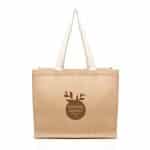 Take your companies branding to the next level with this sleek and timeless natural jute shopper. Made with a laminated finish and designed to stand out, this bag is perfect for showcasing your logo with style and impact. Equipped with long flat cotton webbing handles for added comfort and durability, itÂ’s built to handle daily errands, grocery trips, and more making it a reliable go-to for your customers. Customise it with your companyÂ’s logo and ensure maximum brand visibility. Whether youÂ’re distributing them at trade shows, events, or offering them as promotional gifts, these shoppers are a proven way to keep your brand top of mind. Order today and be sure to leave a lasting impression!